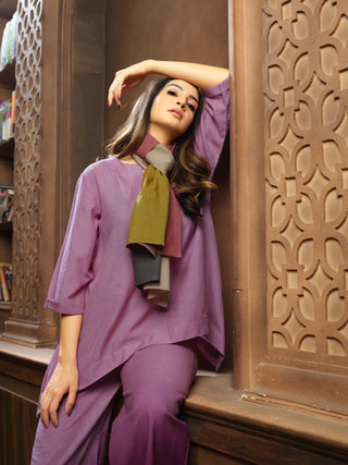 Anvyaa-Solid Purple Bamboo Fabric Co-Ord Set