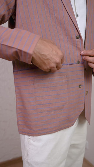 Men’s Striped Khadi Casual Jacket – Handwoven Organic Fabric | THREAD GAME