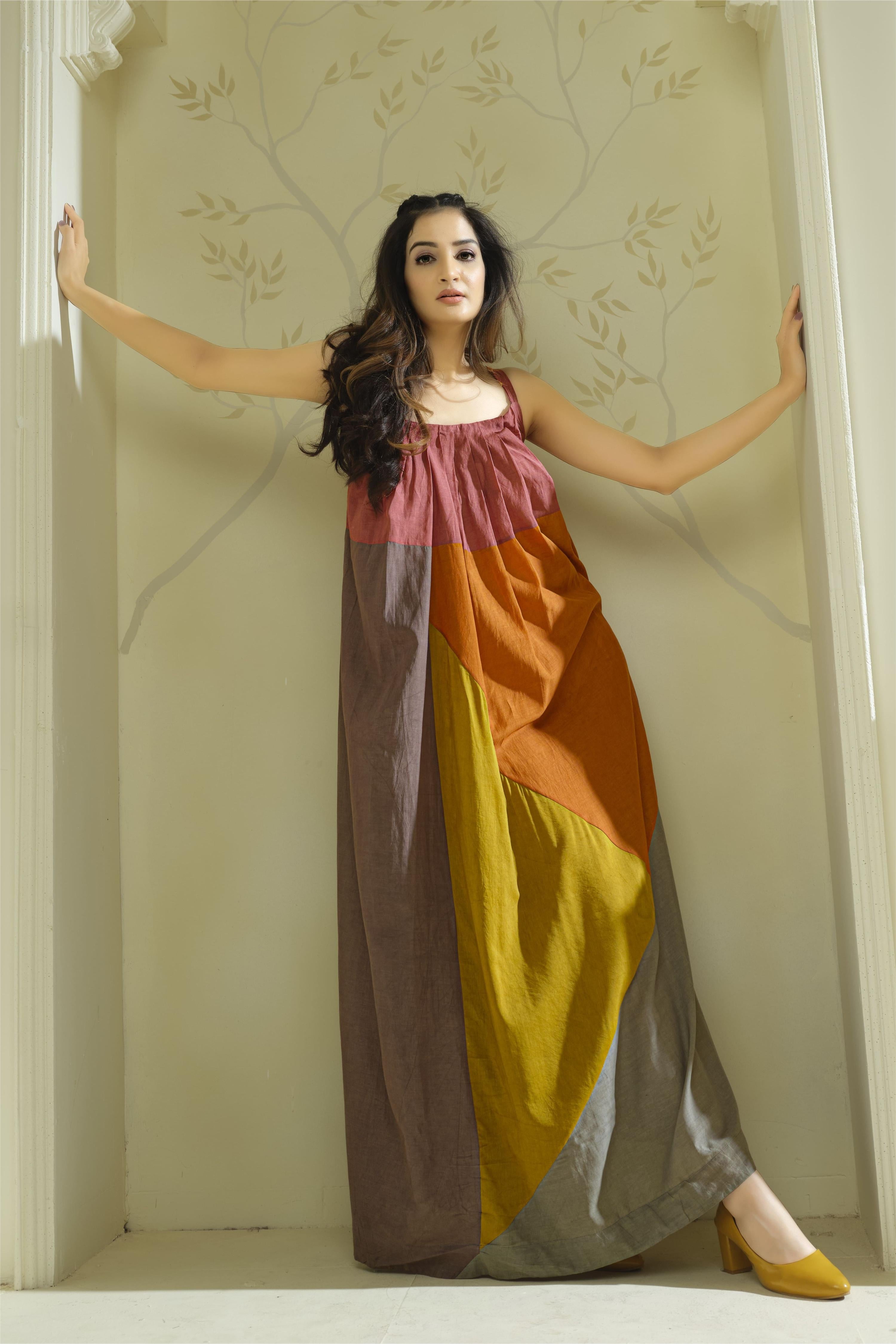 Step into a new era of conscious luxury where the raw beauty of nature meets architectural design. This silhouette marks a bold statement in the world of Pure Bamboo Fabric, designed for the modern wanderer who demands a garment as fluid as their lifestyle. With a palette inspired by sun-drenched clay and deep forest shadows, this maxi is a wearable landscape that breathes with you and moves like water. It redefines effortless elegance by combining a high-fashion aesthetic with the unmatched, silky comfort of bamboo fibers.