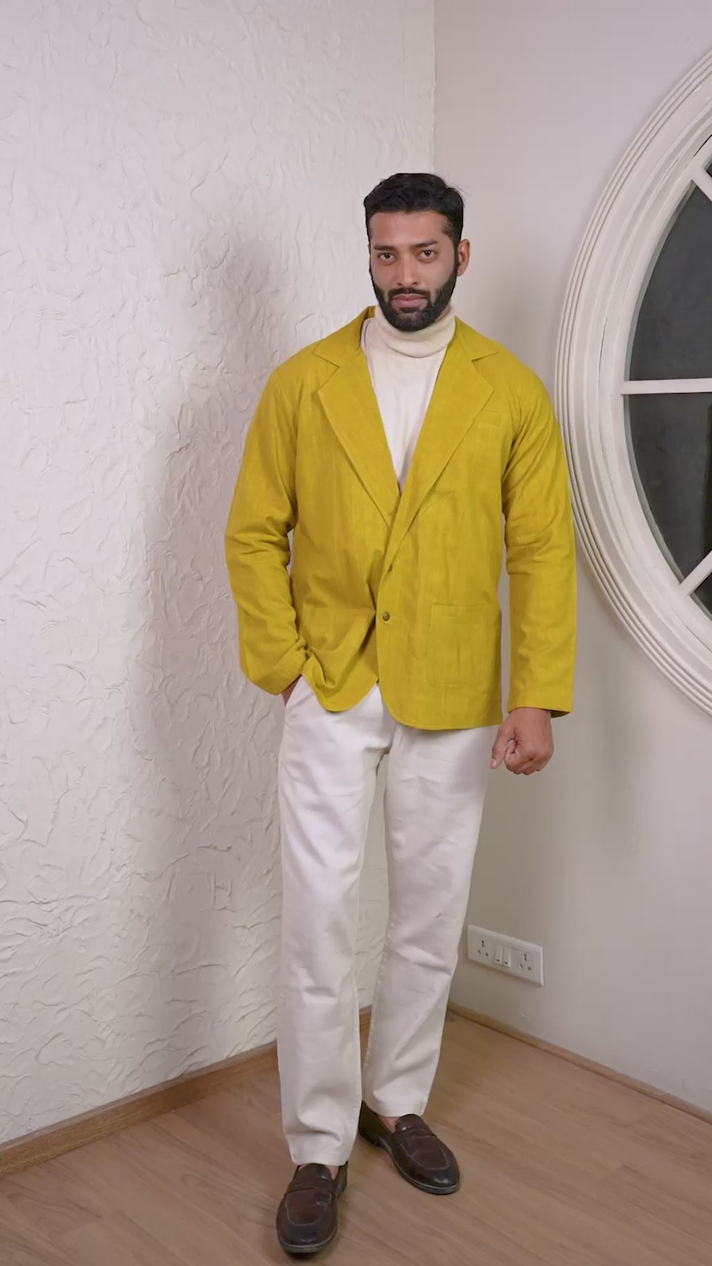 The vibrant Sunshine Yellow, makes this jacket a bold yet classy statement piece. Designed in a relaxed fit silhouette, it features wide lapels, dual front buttons, and spacious patch pockets for everyday ease. Lightweight, breathable, and versatile, this Khadi jacket is perfect for smart workplaces, semi-formal events, casual outings, and creative presentations. A modern wardrobe essential rooted in India’s sustainable heritage.